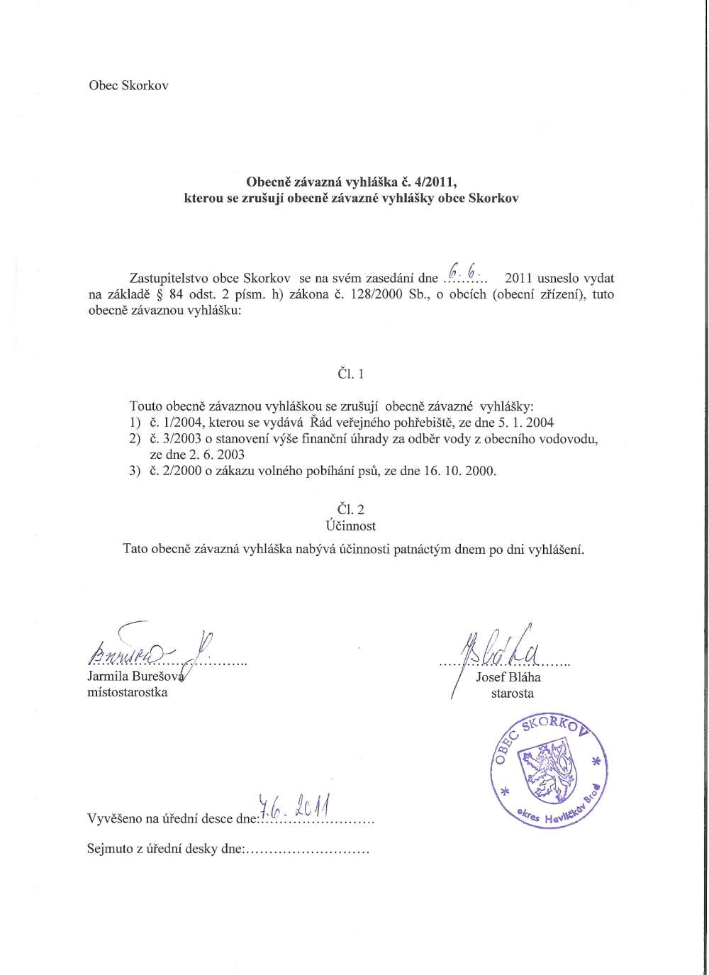 Obecná závazná vyhláška č.4 -2011