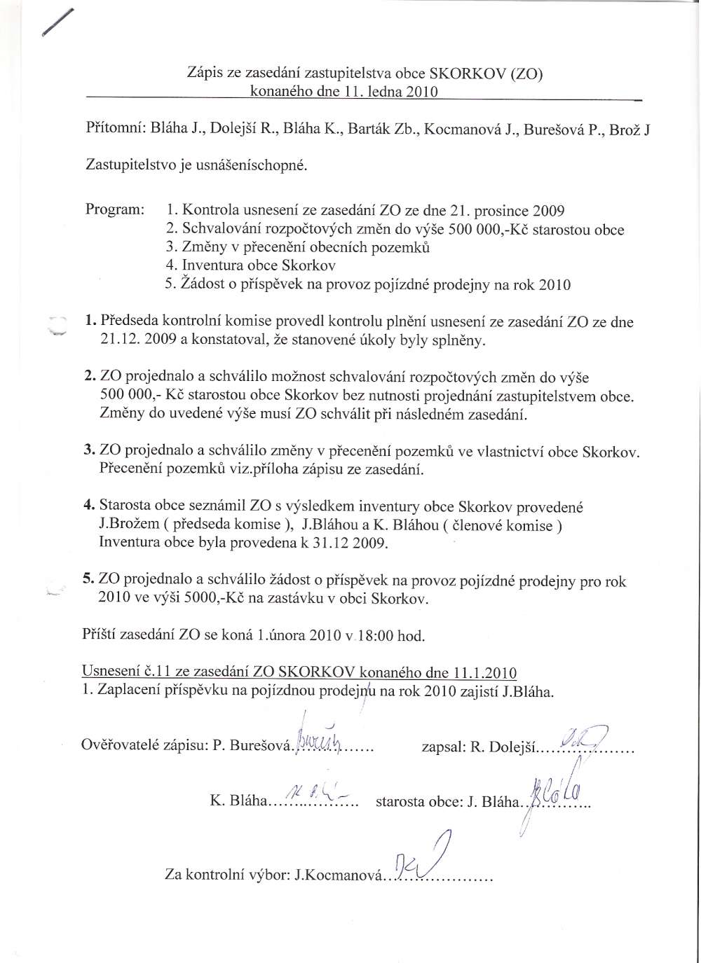 zasedání zastupitelstva 1.2.2010a