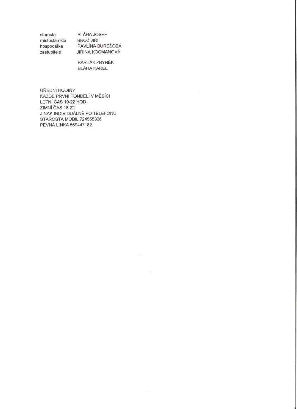 ZASTUPITELSTVO A ÚŘEDNÍ HODINY