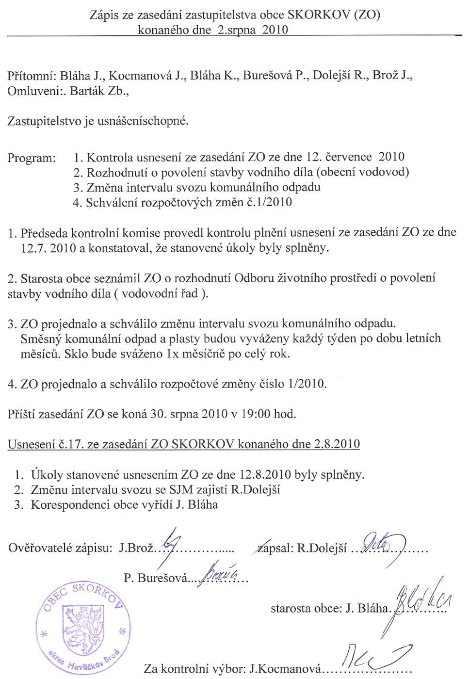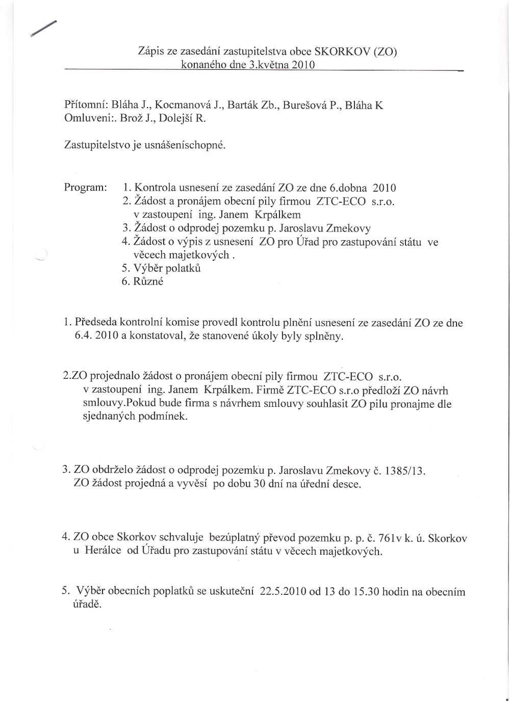 zápis zastupitelstva 1.3.2010a