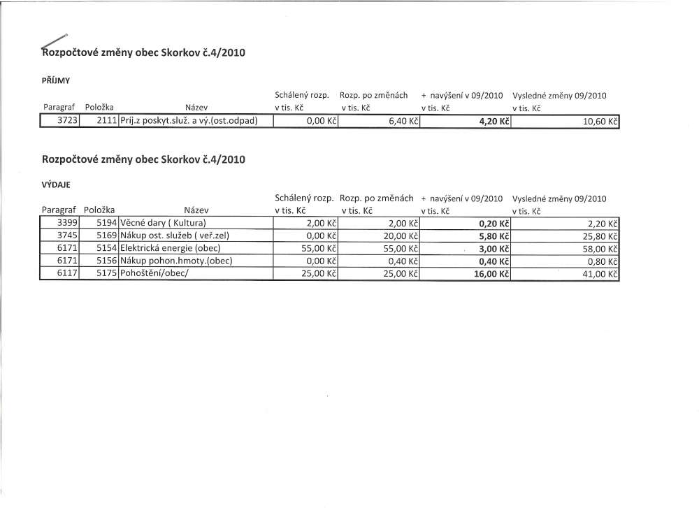 rozpočtové změny č 4