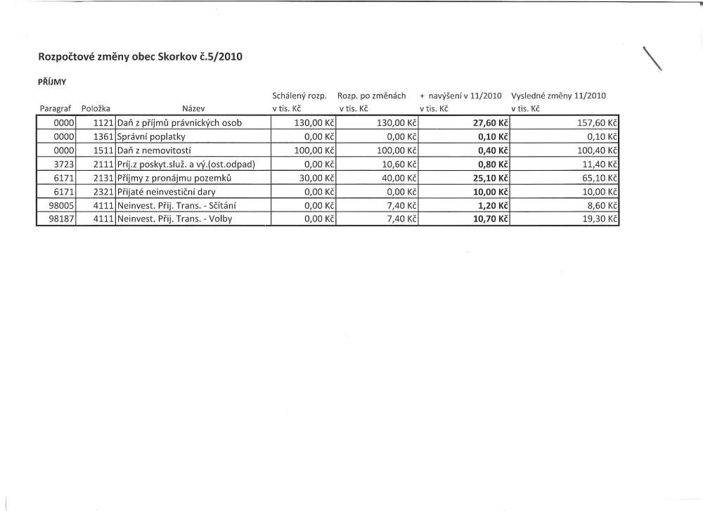 rozpočtové změny č 5
