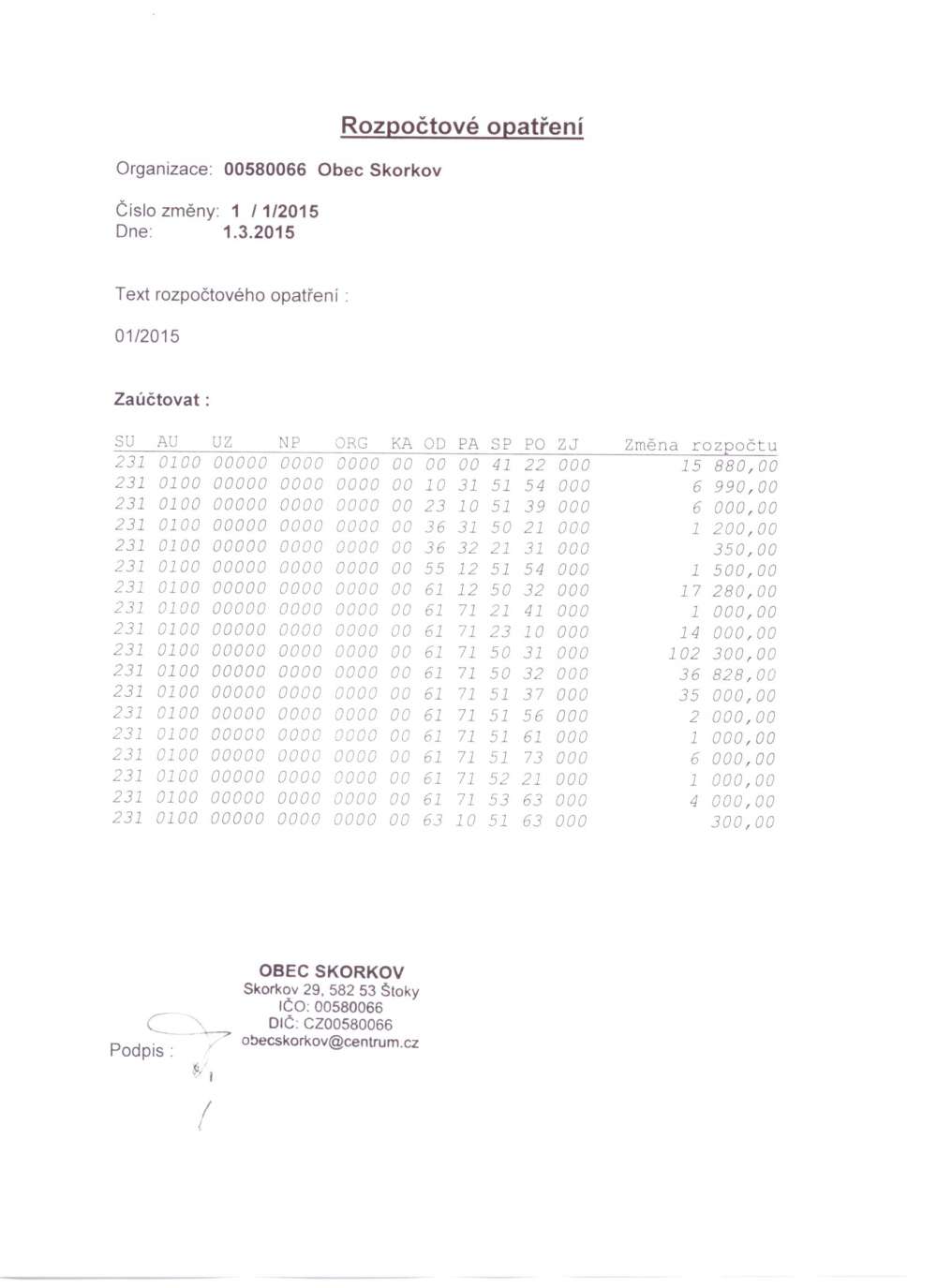 Rozpočtové opatření 1/1/2015