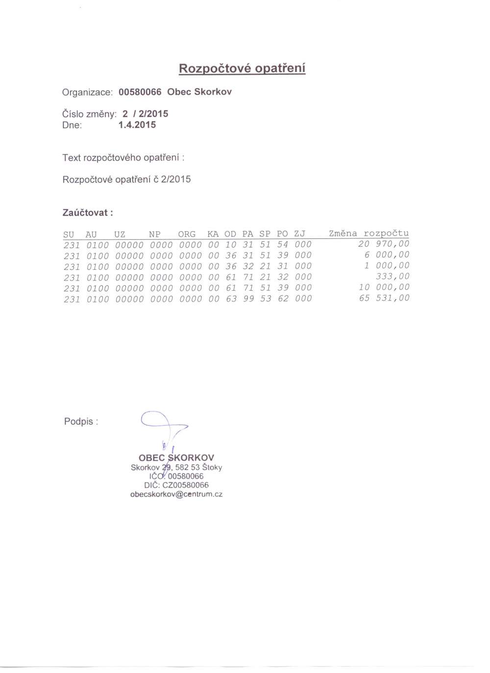 Rozpočtové opatření 2/2015