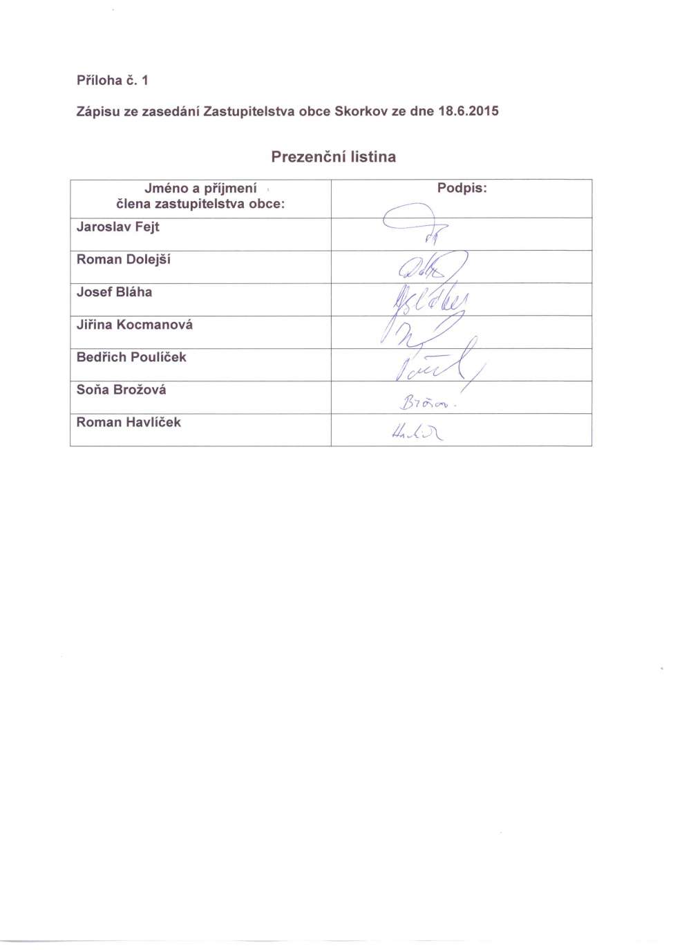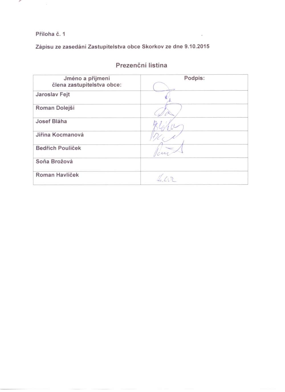 Prezenční listina zasedání 9.10.2015