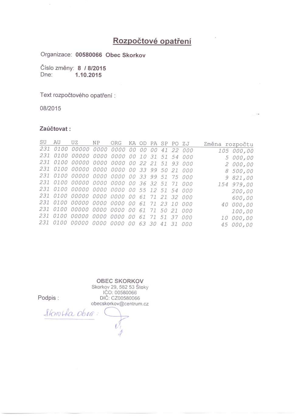 Rozpočtové opatření 8/8/2015