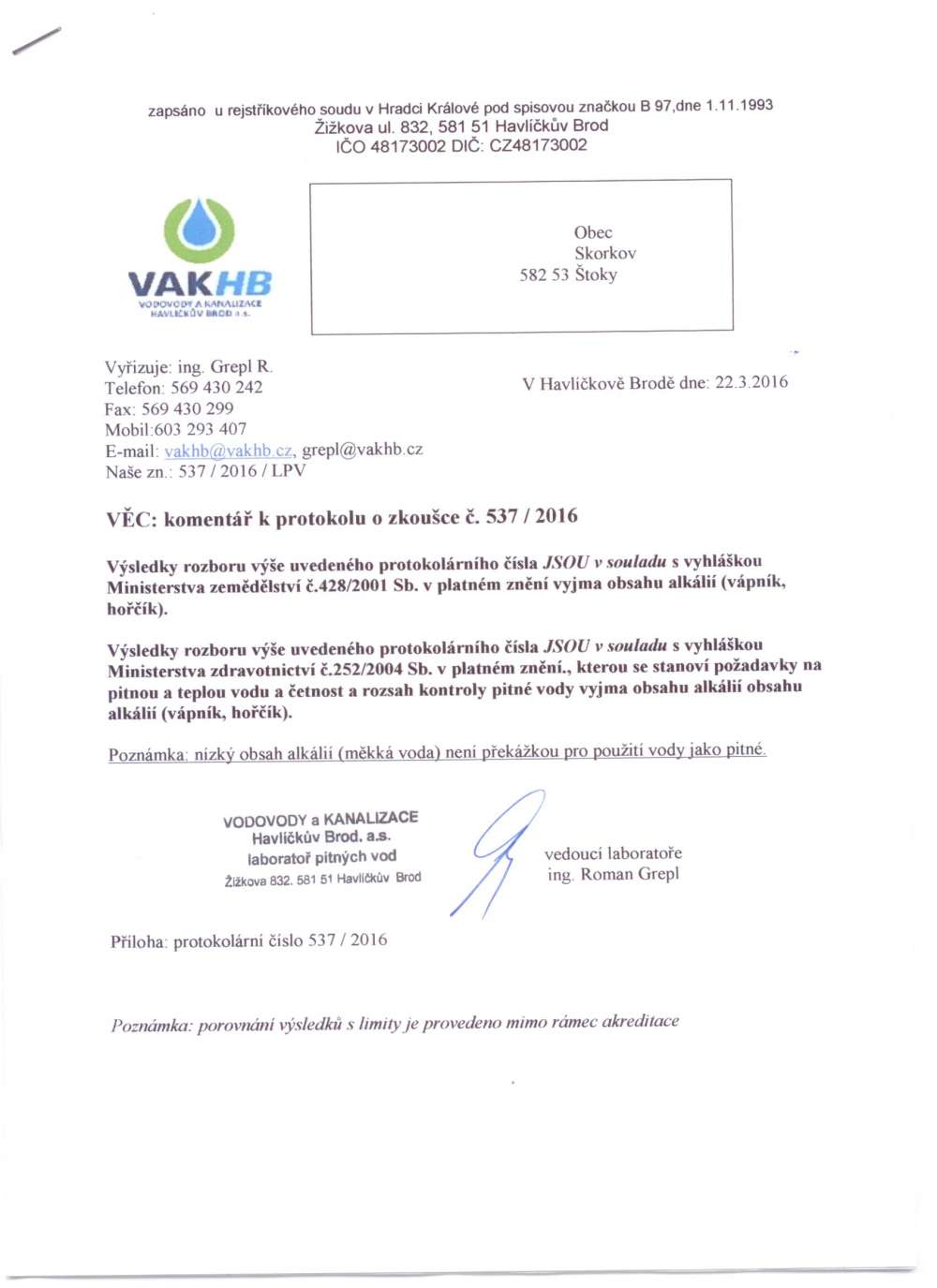 Zpráva o výsledku přezkoumání hospodaření obce Skorkov za rok 2015