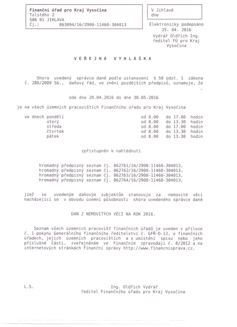 Veřejná vyhláška - odbor územního plánování Kraje Vysočina