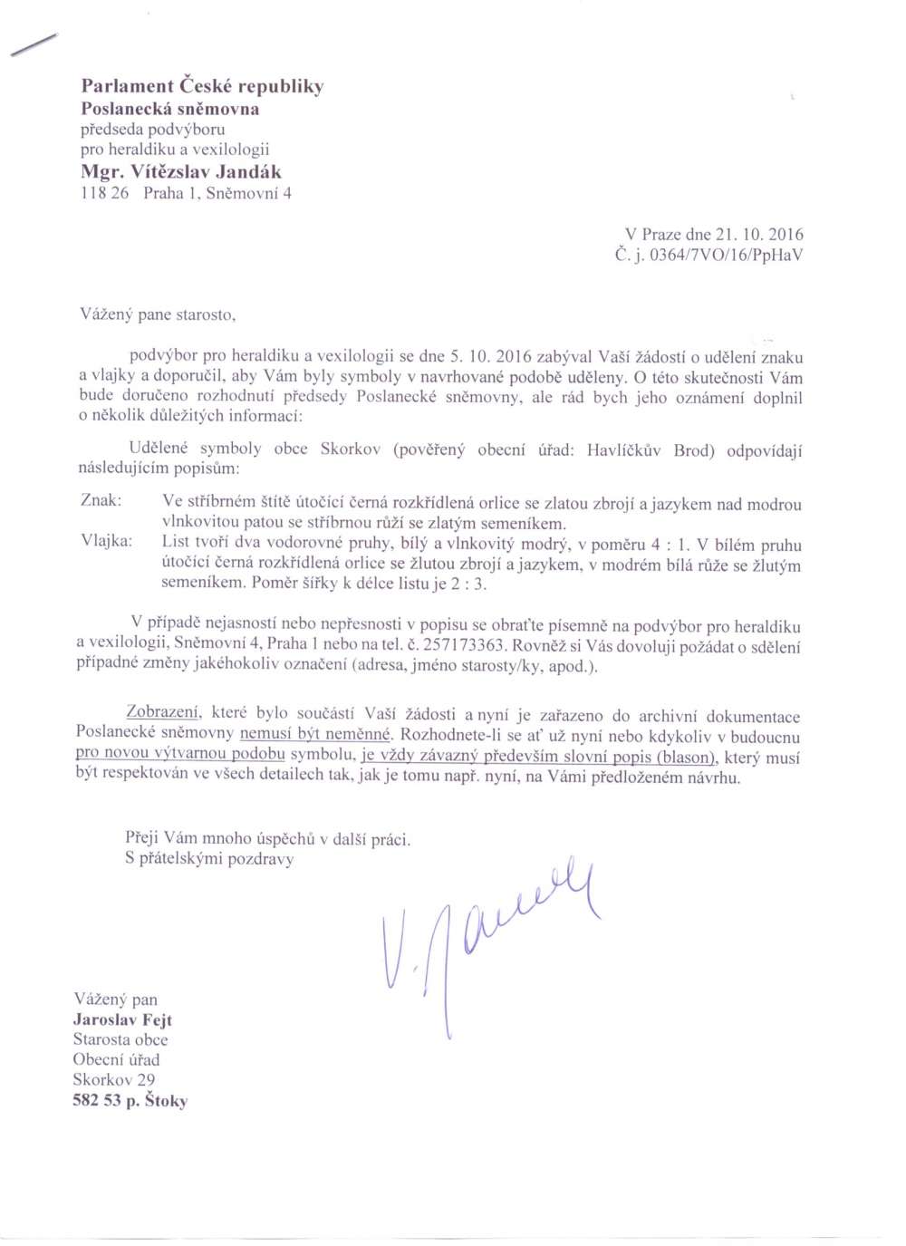 Rozhodnutí PSČR o přidělení znaku a vlajky