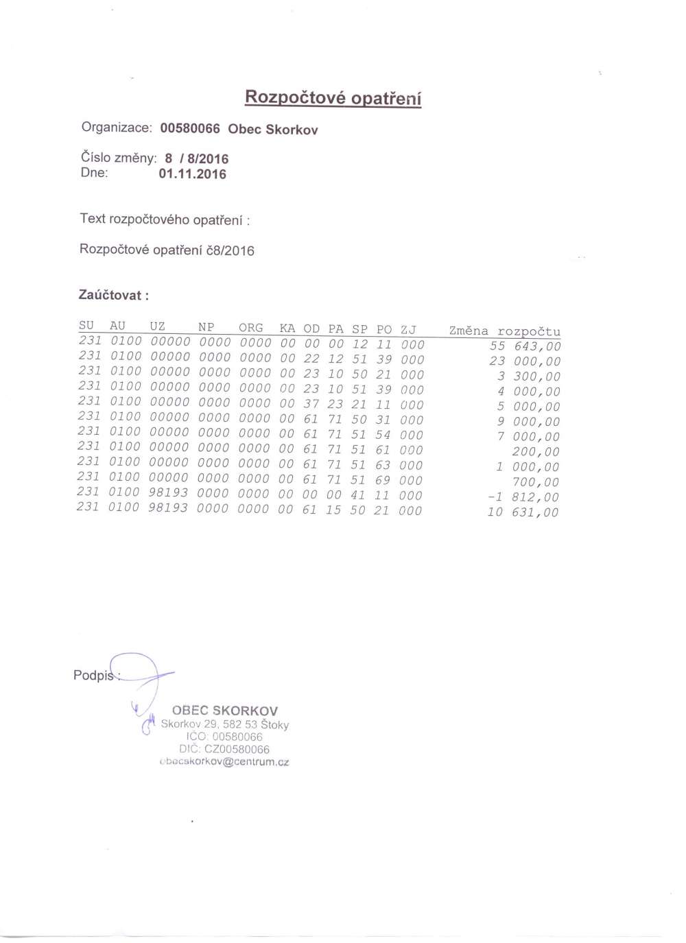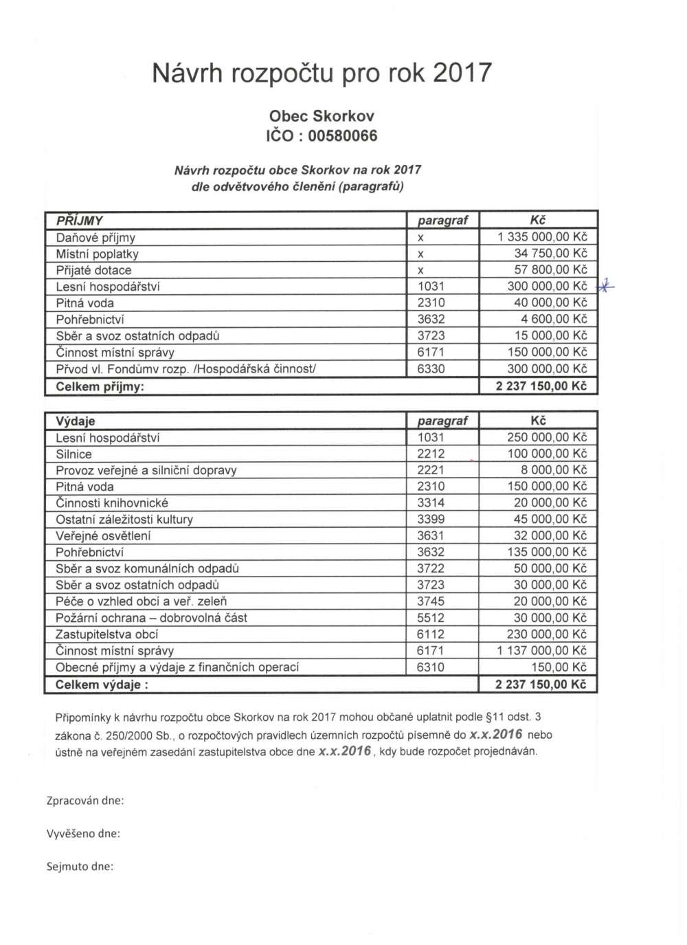 Návrh závěrečného účtu obce Skorfkov za rok 2015