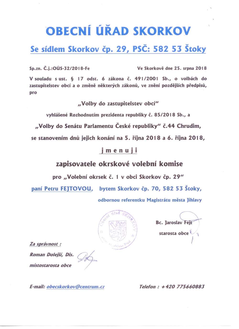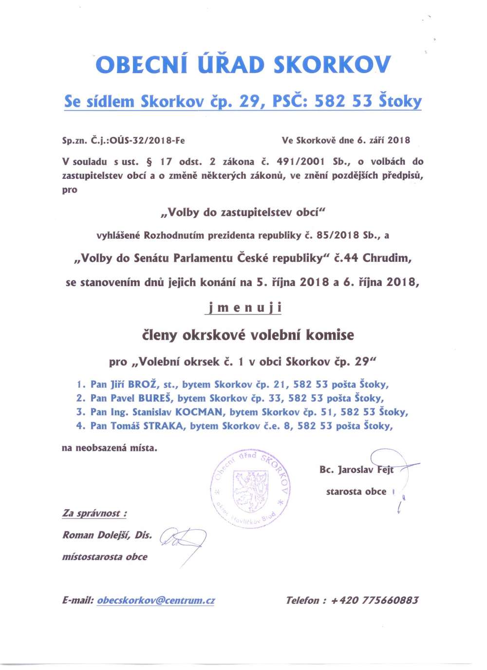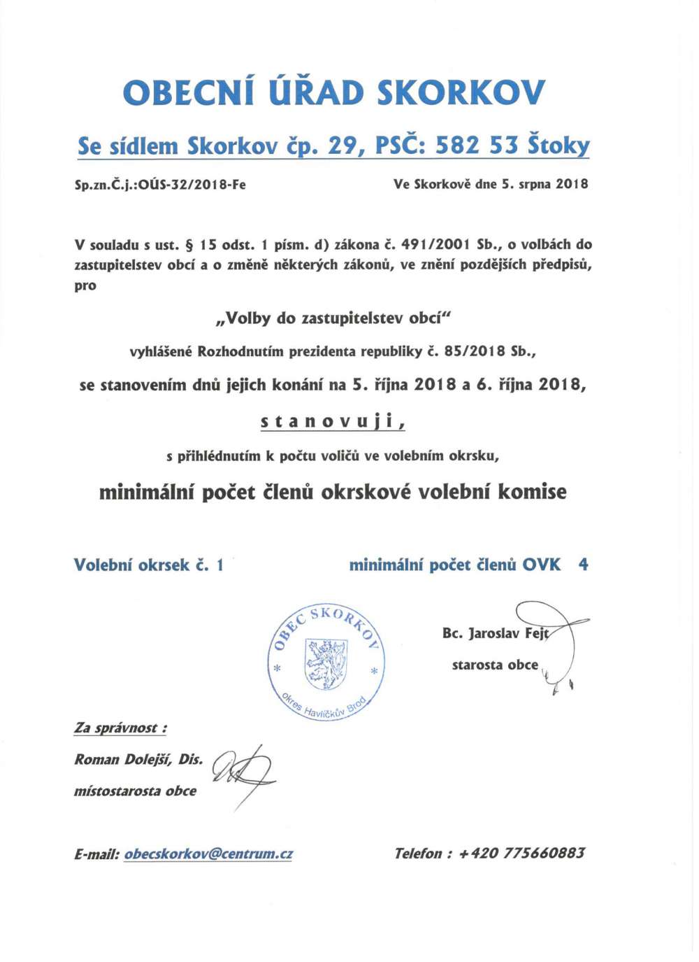 Informace o počtu a sídle volebních okrsků v obci Skorkov
