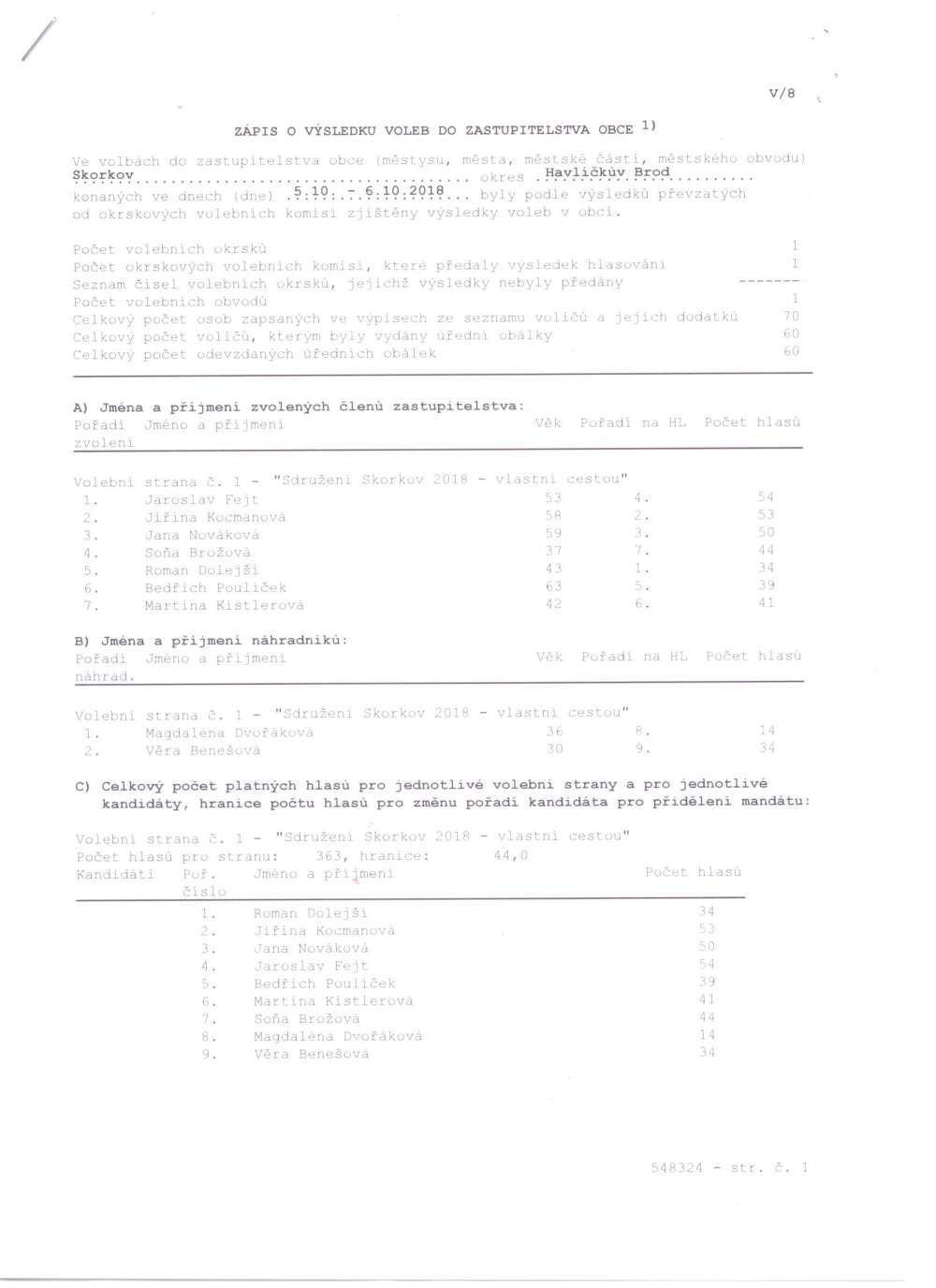 Zápis z ustavujícího zasedání zastupitelstva obce Skorkov