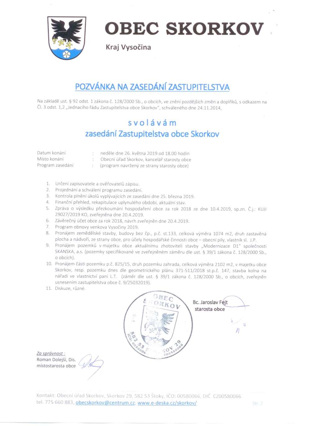 Zápis z dílčího přezkoumání hospodření obce Skorkov