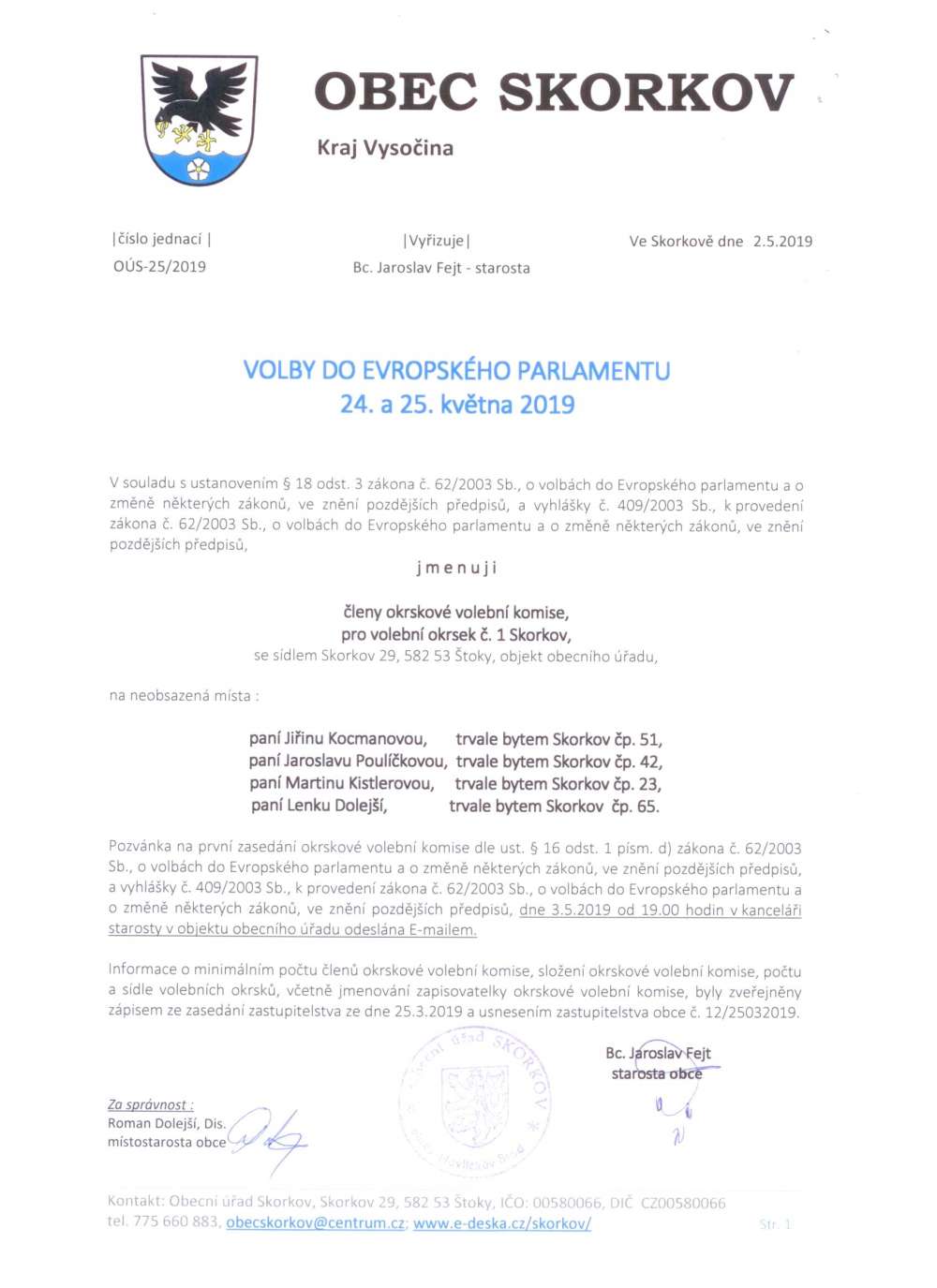 Jmenování členů OVK - vloby do Evropského parlamentu