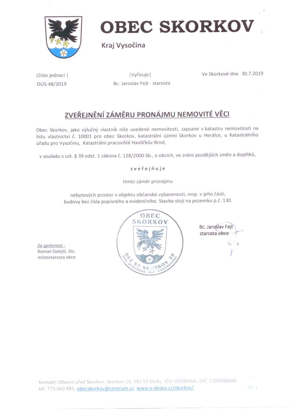 VEŘEJNÁ VYHLÁŠKA - Oznámení o možnosti převzetí LHO