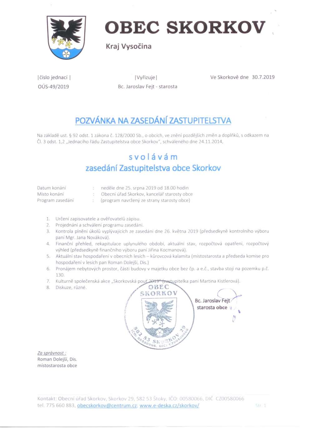 Zápis ze zasedání ZO ze dne 25.8.2019